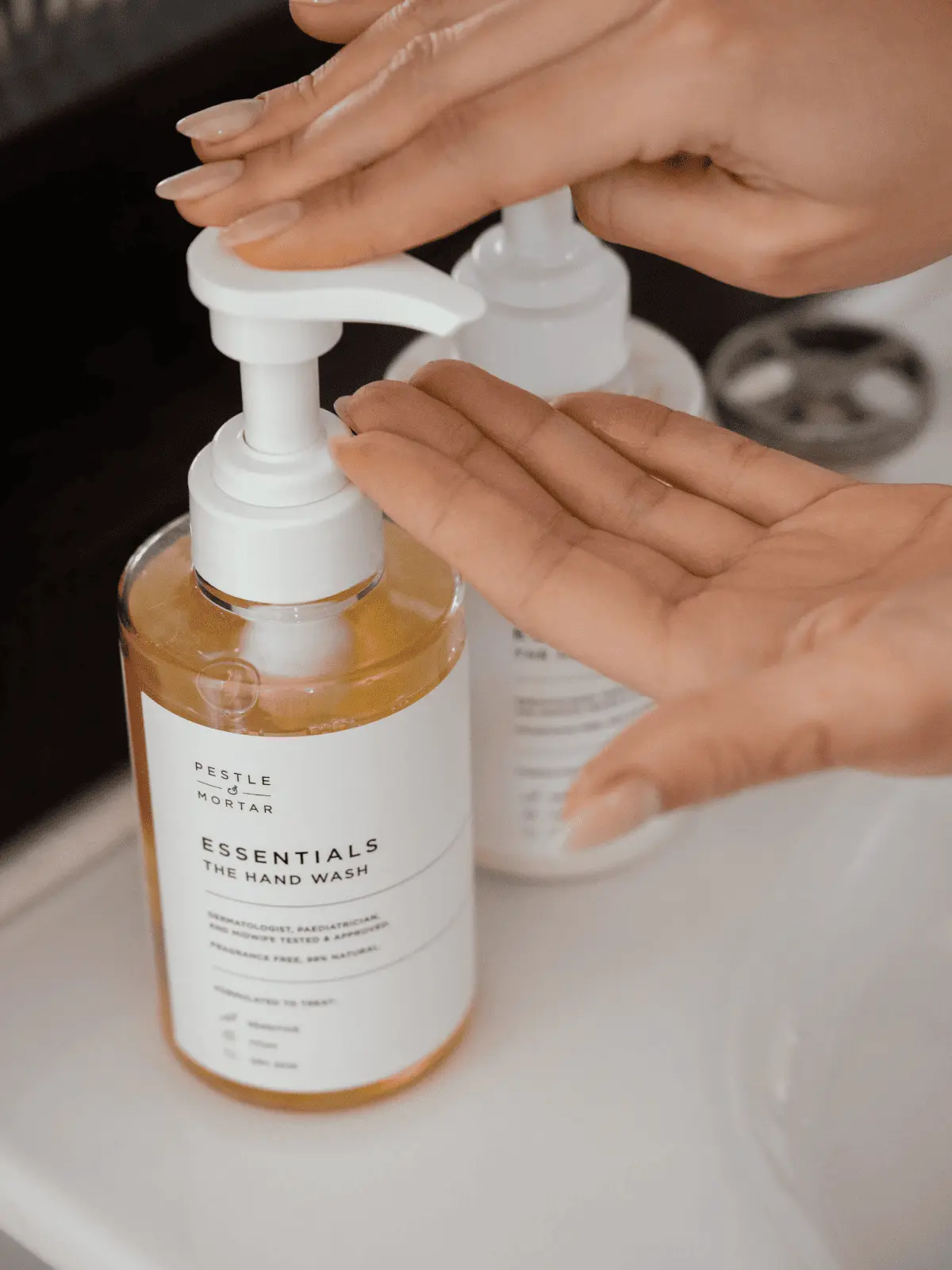Šioje neputojančioje, 99% natūralioje formulėje nėra mineralinės alyvos, SLS ir dirbtinių kvapų. Dermatologiškai patikrintas, akušerių ir pediatrų patvirtintas „Essentials Hand Wash“ valo ir minkština odą bei mažina niežtinčias odos ligas.